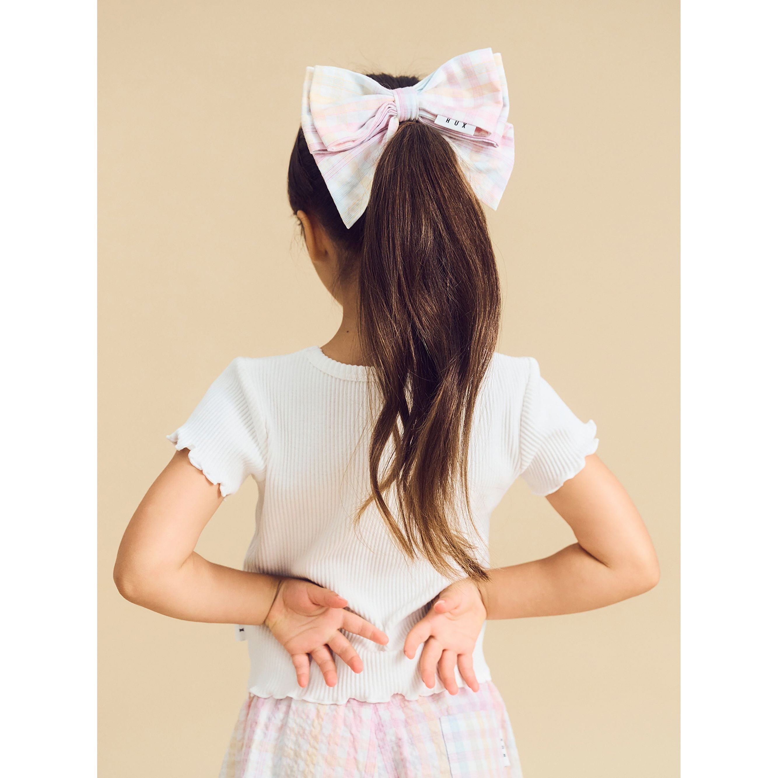 Super cute oversized cotton seersucker yarn dye rainbow check hair bow with clip