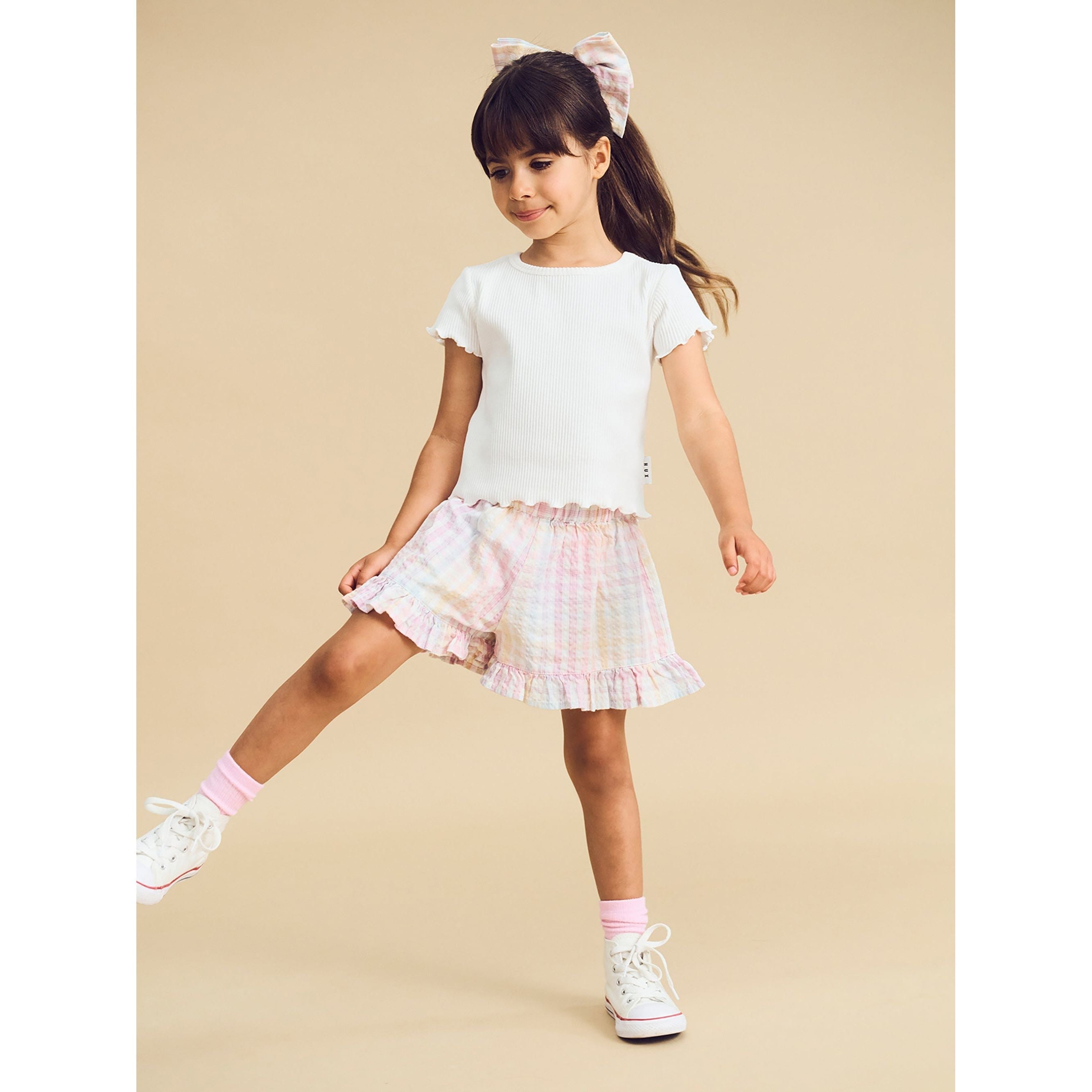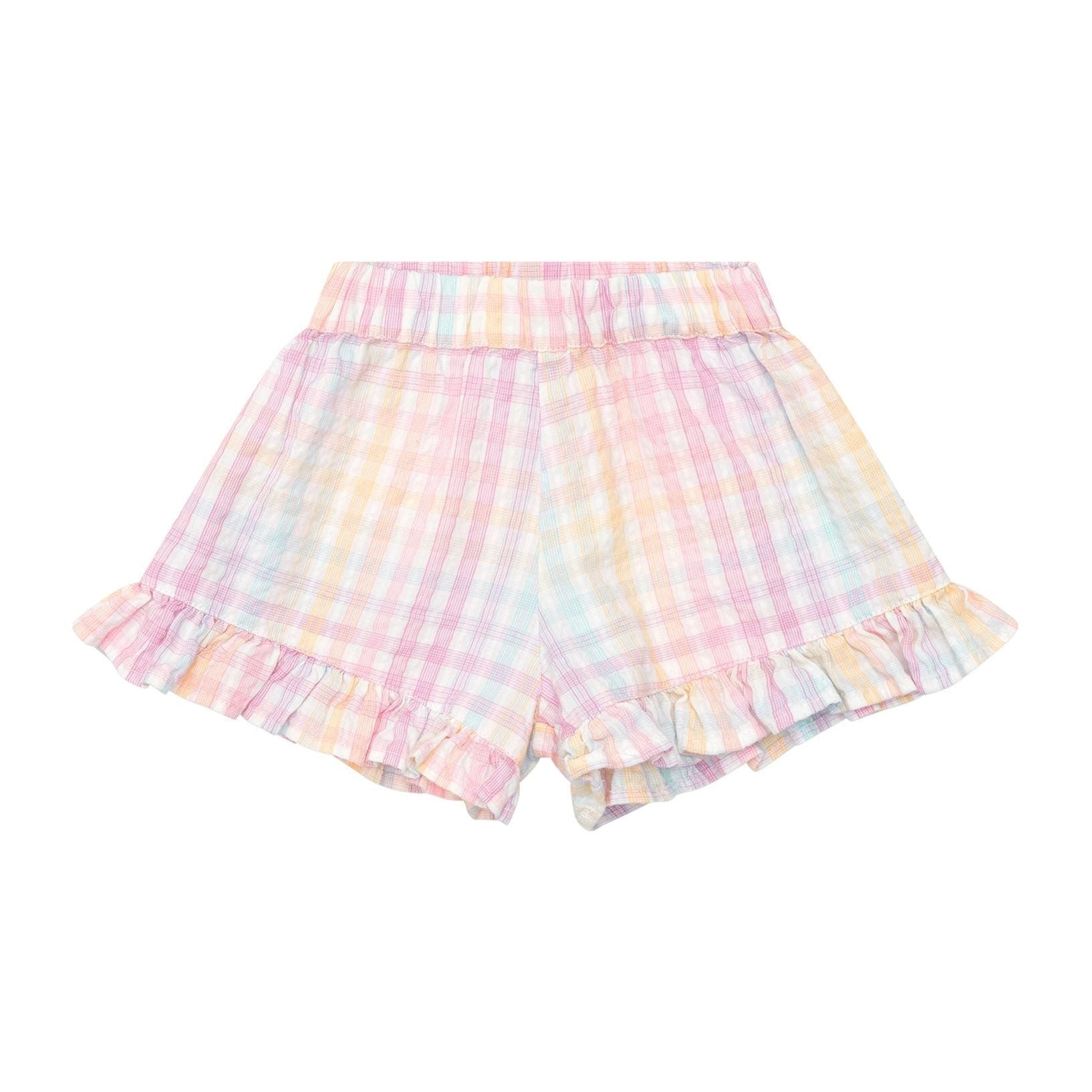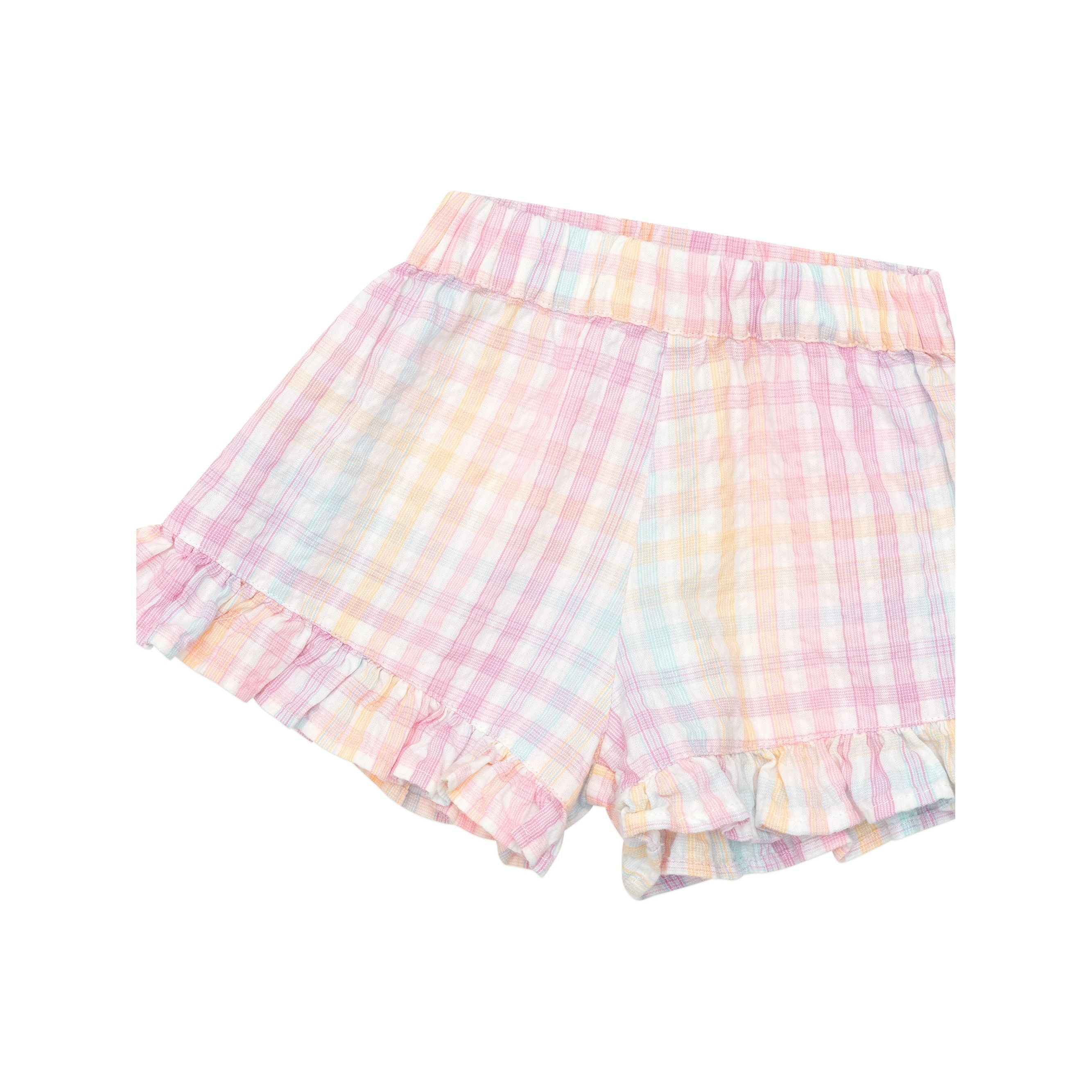 Cotton seersucker yarn dye rainbow check frill skort