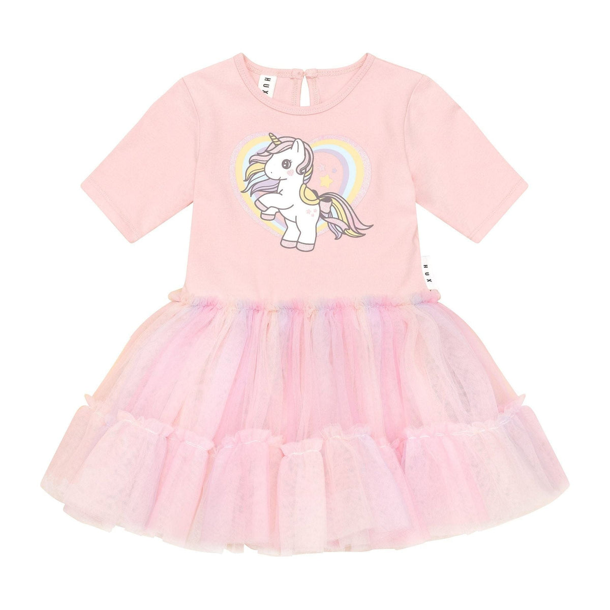 Luxurious ballet dress with rainbow unicorn print and frill rainbow layered tulle skirt