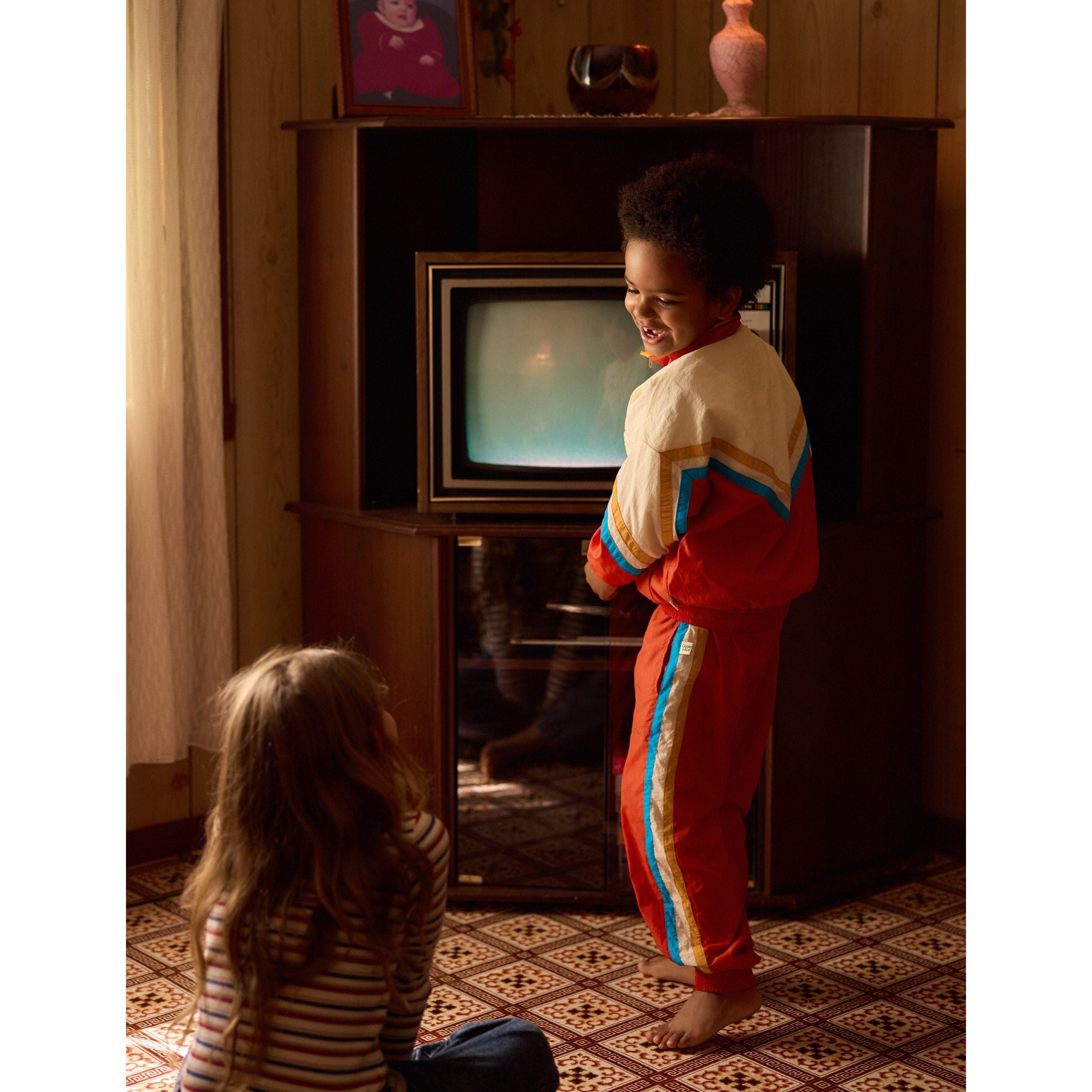 True to size. Lightweight, retro parachute style fabrication with cotton lining. Functional drawstring and pockets. Elasticated at the waist and ankle. Features contrast panelling on sides.