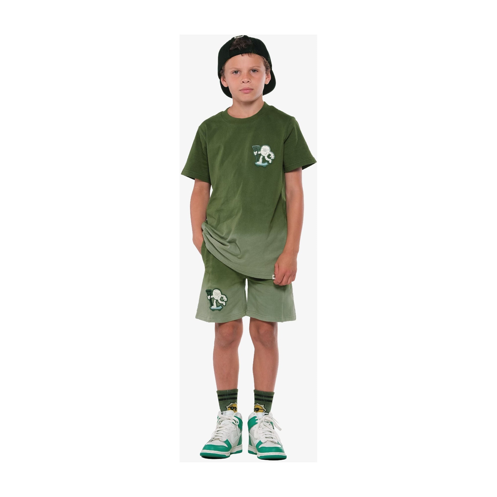 The Band of Boys Ride or Die, dip-dye seam front shorts will become the wear on repeat summer piece! These cool shorts can be paired with anything! They have a double stitched drawstring waist to prevent elastic from rolling – a must for summer adventures. These cool shorts have a rubber patch on the leg, a slightly relaxed crotch, front and back pockets, subtle stitch detailing down the front and back leg panels and are made of soft, stretch loopknit cotton. Noah is 140cm tall and wears a size 8