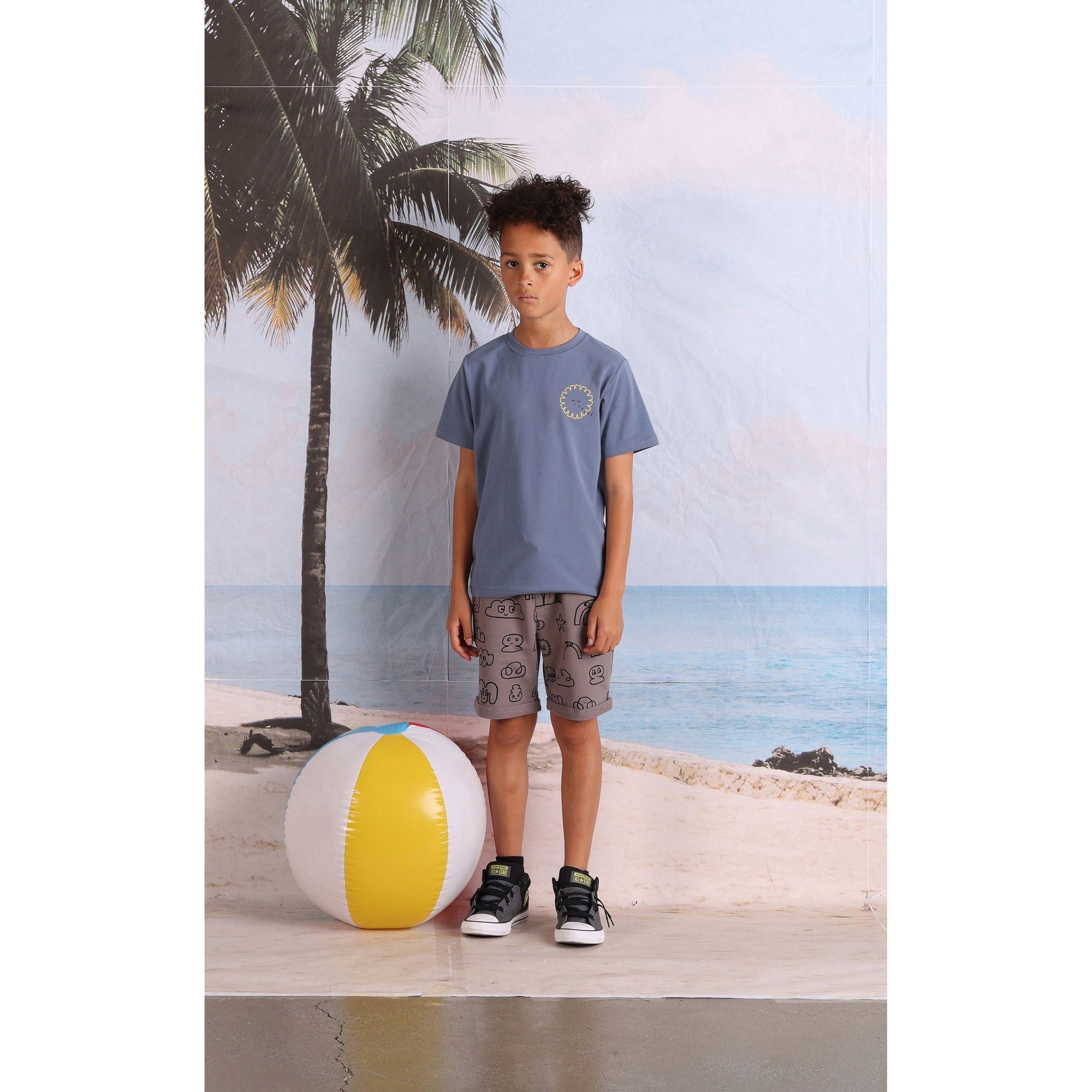 Small print on the front and big print on the back. 95% Cotton // 5% Elastane.