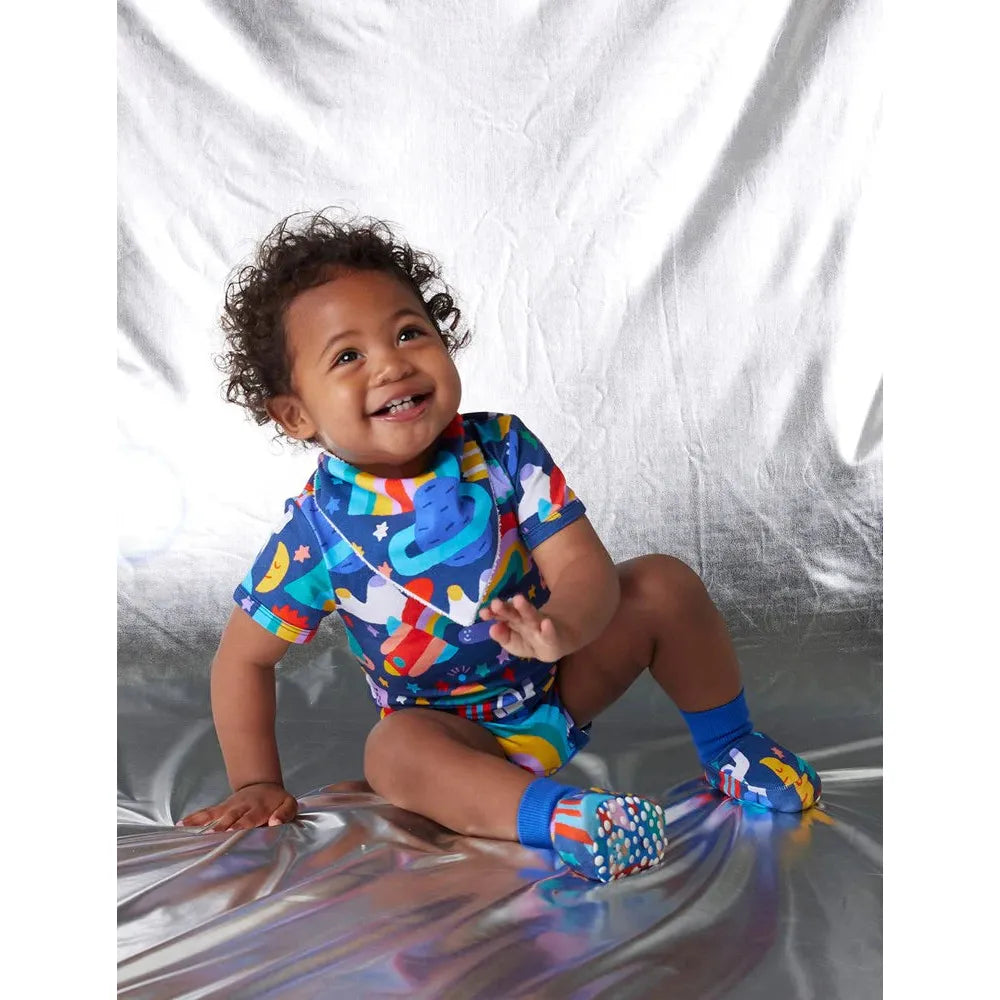 Features comfy towelling on reverse, convenient press stud closure, and an adjustable setting to grow with your baby.