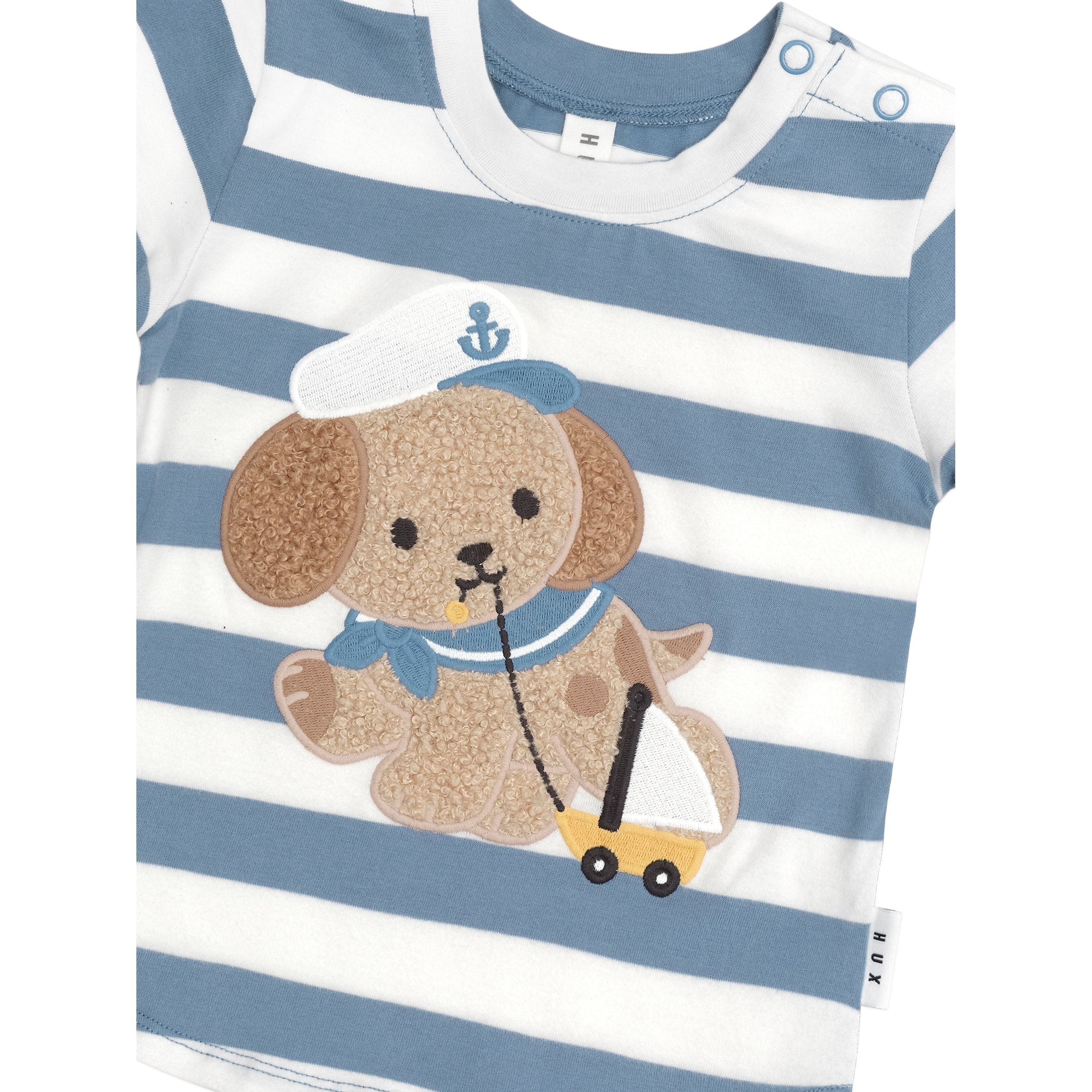 Super soft, premium organic cotton yarn dye jersey t-shirt with sailor pup applique