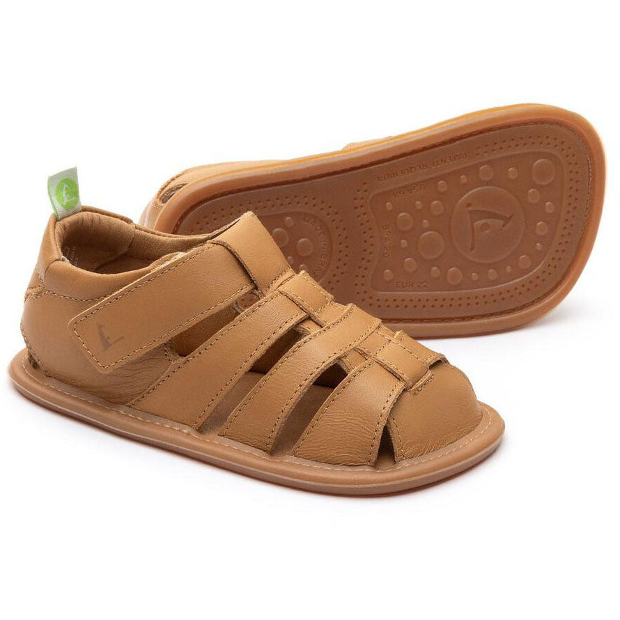 This is the sandal closed on the front to hold foot in place while baby walks. It features a manually smashed leather to create a more original effect.
