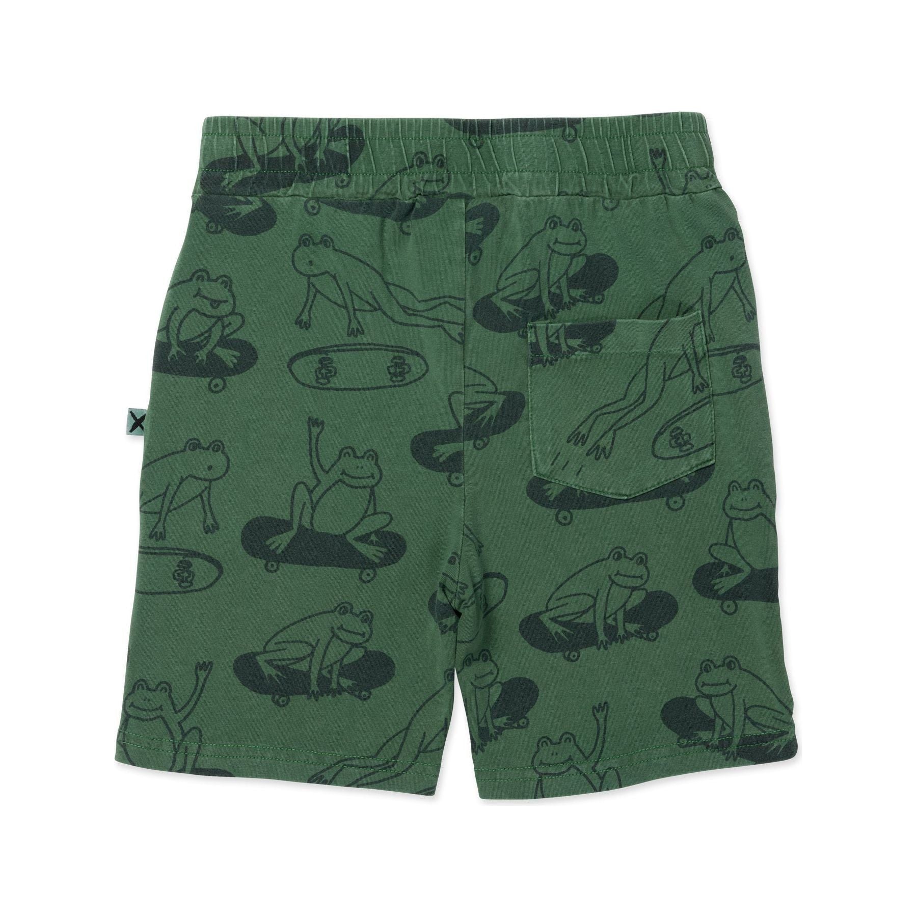 Tshirting weight short with elastic waistband, side pockets, back pocket, and shoe lace cord. 95% Cotton // 5% Elastane.