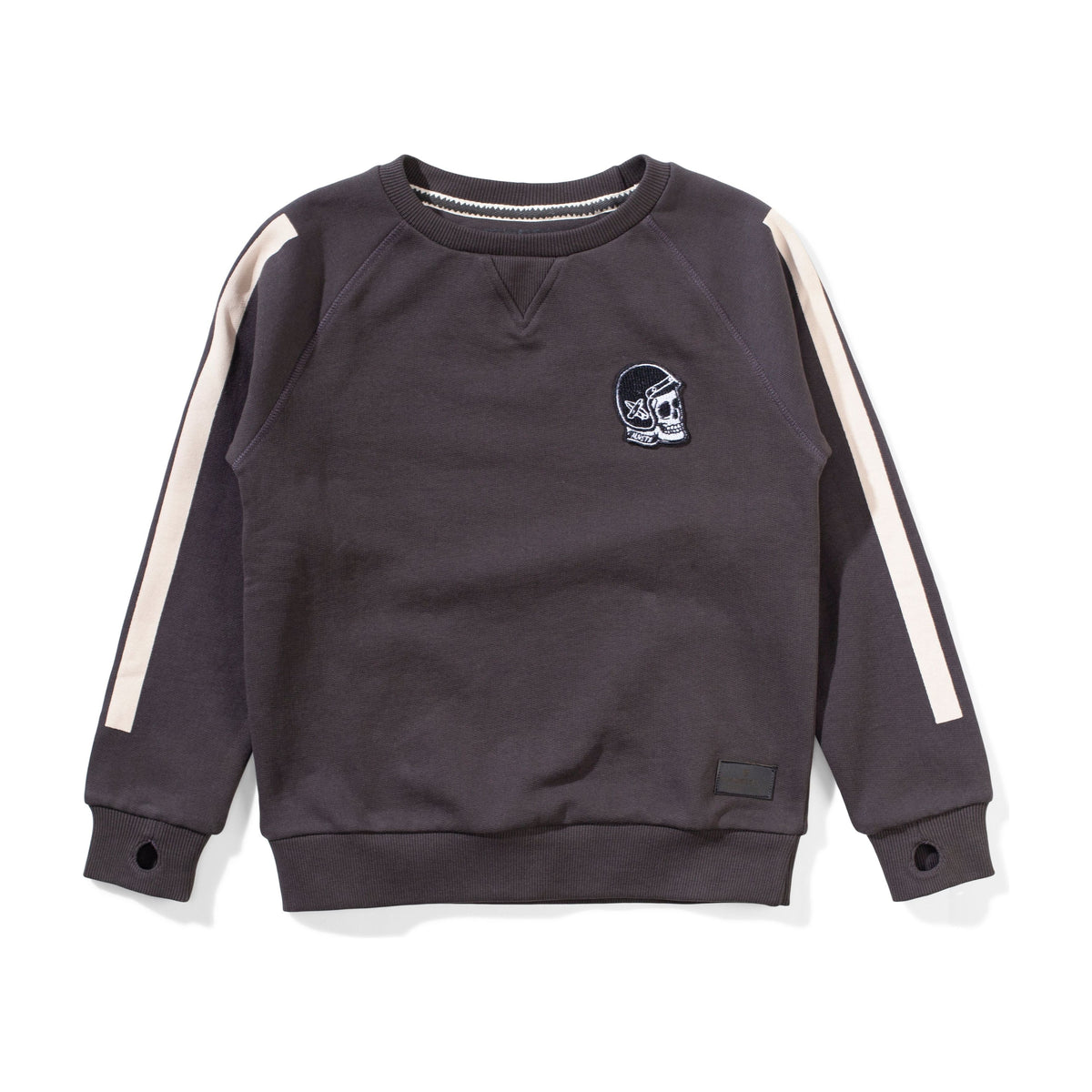 Unleash your inner rebel with our Skull Racer Crew. Made with 100% cotton brushed fleece, this soft black crew will keep you comfortable.