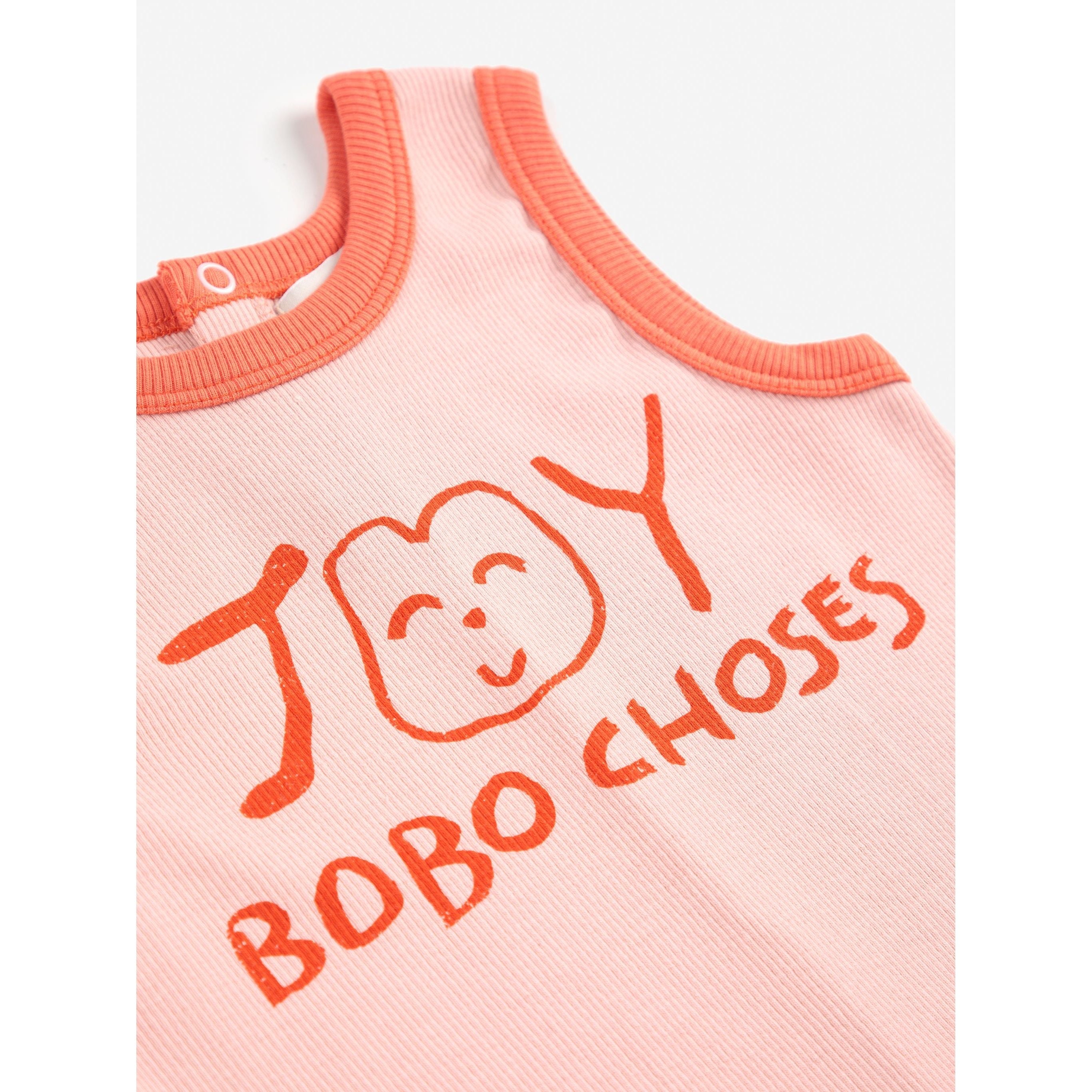 Playful and charming, this light pink playsuit is great for warm days. Crafted from 94% organic cotton and 6% elastane, it offers a straight fit with a relaxed crotch and wide round neck. Sleeveless with back and crotch snap fastening, it features embroidery details and a patch pocket for a fun and functional design. Made in Spain with care for the future.
