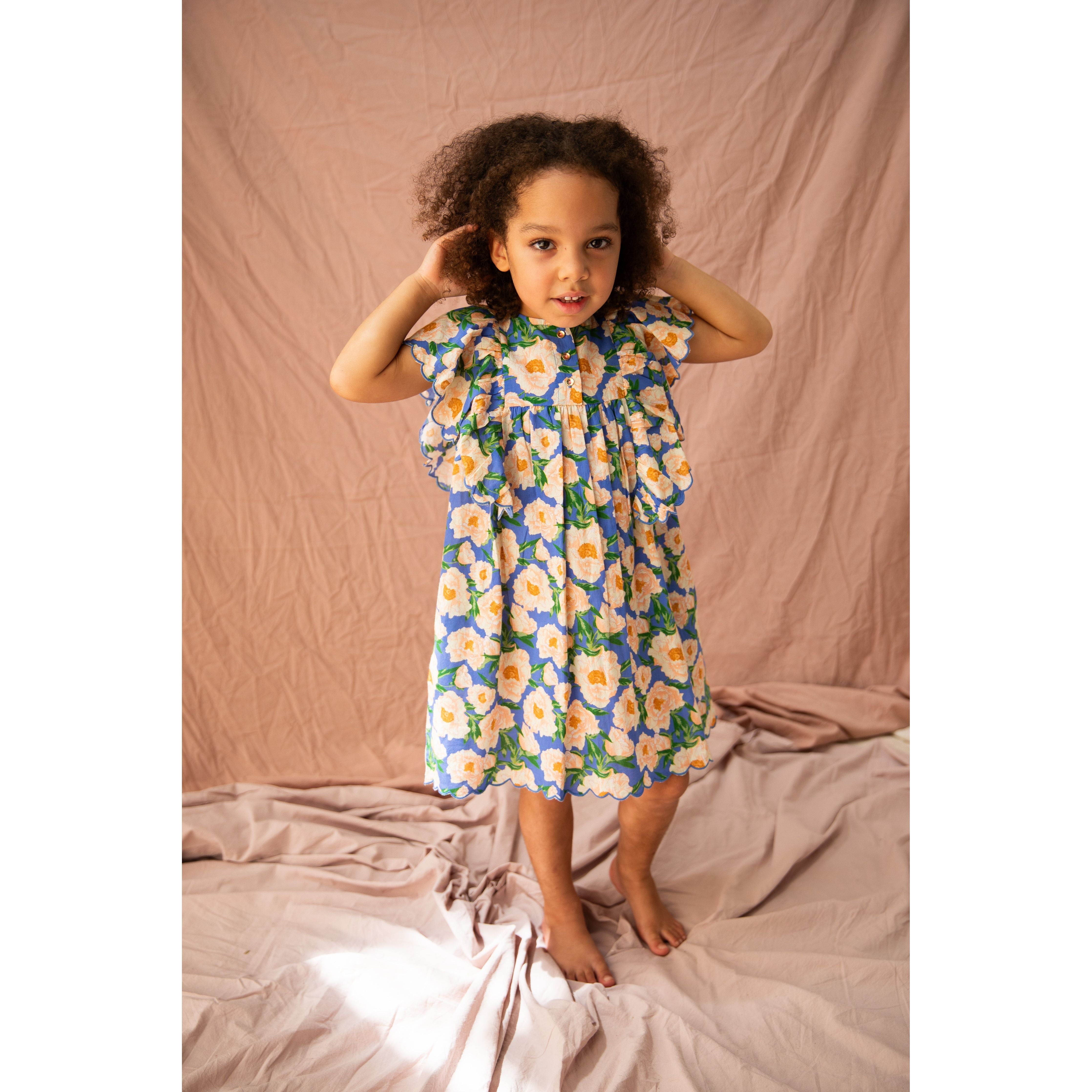 Its all in the divine details; Sophia features frilled shoulders and gold button front in our stunning Soiree Bouquet print on light cotton voile and finished with scalloped embroidery edging. This cutie will take you from tea party to visiting Gran, no sweat.