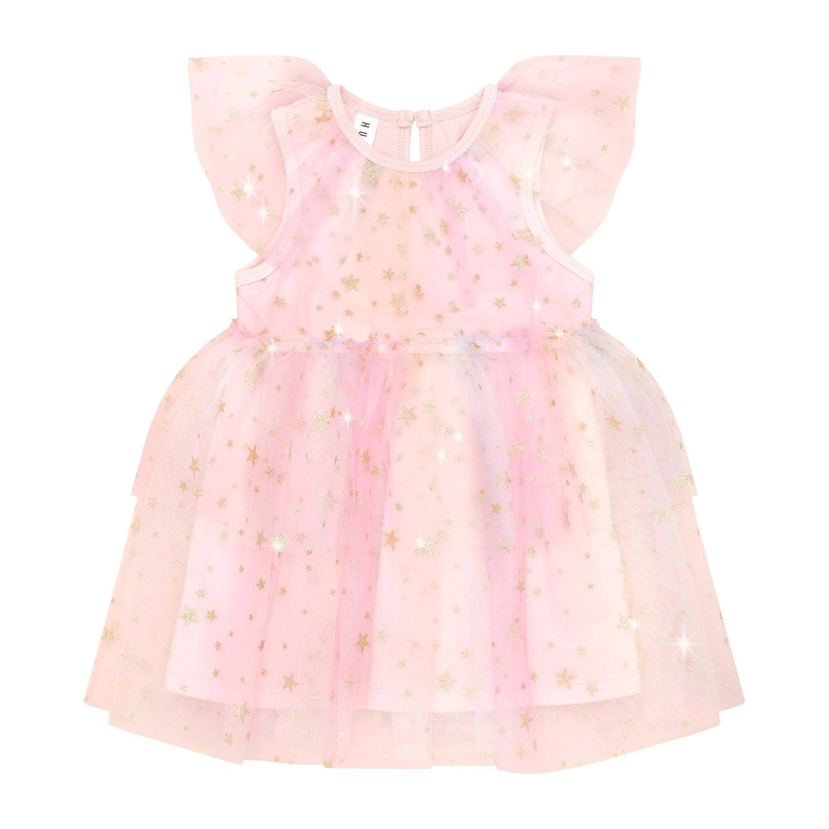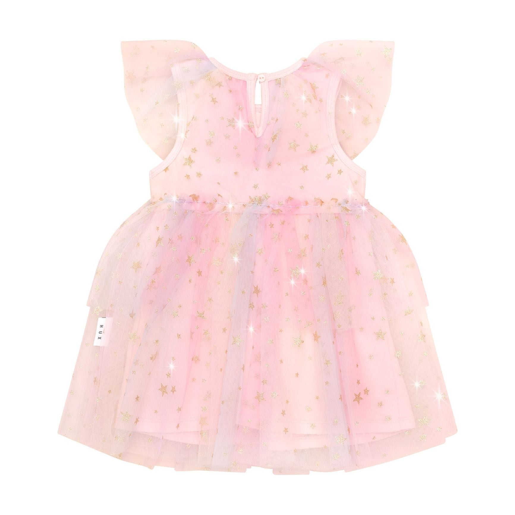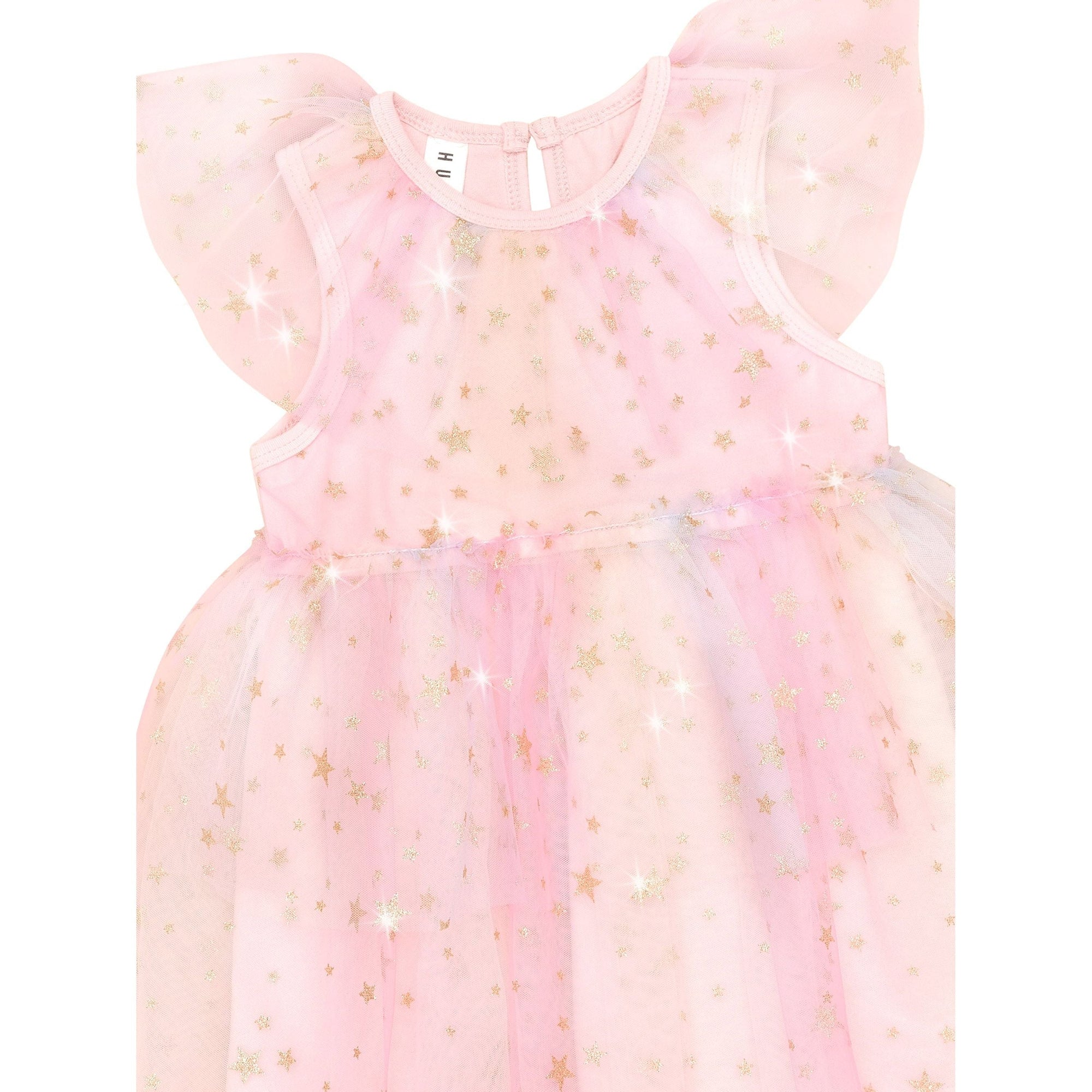 Frill rainbow tulle dress with all over glitter star print