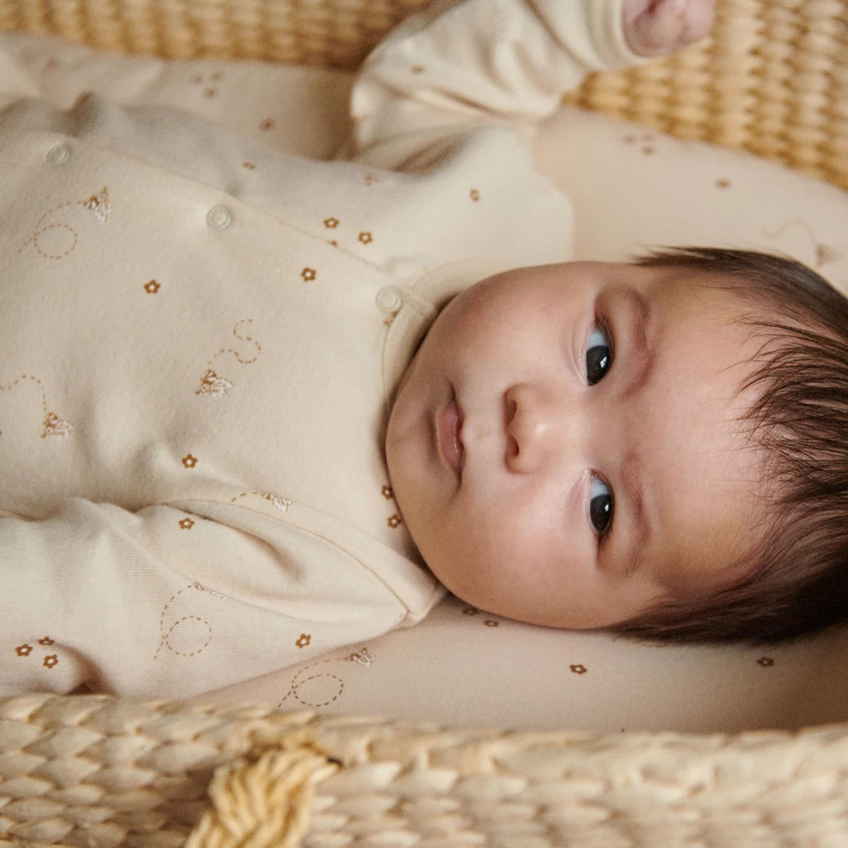 All in one suit is perfect in baby's first few months, for both day and nightwear. The Stretch & Grow keeps baby's feet covered and features convenient snap domes all the way down the front and around the legs to facilitate easy nappy changes. Made from soft and breathable organic cotton. To minimise shrinkage, this fabric has been pre-washed.