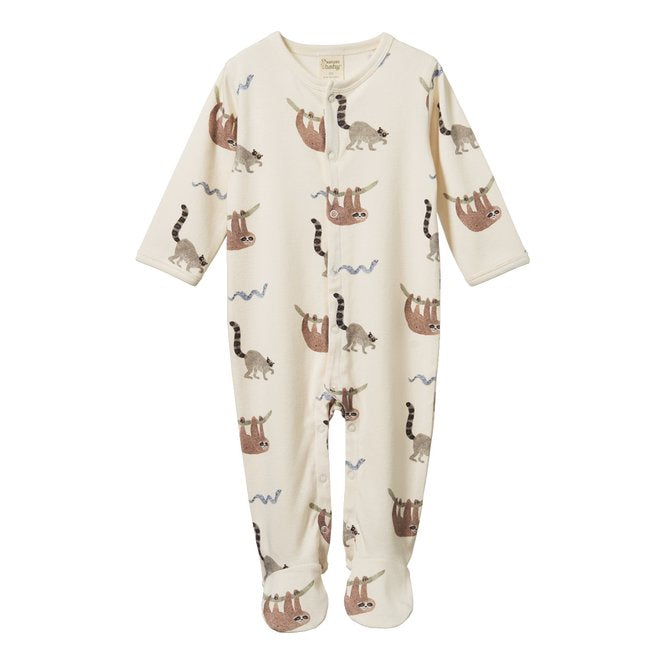 All in one suit is perfect in baby's first few months, for both day and nightwear. The stretch & grow keeps baby's feet covered and features convenient snap domes all the way down the front and around the legs to facilitate easy nappy changes. Made from soft and breathable organic cotton. To minimise shrinkage, this fabric has been pre-washed.