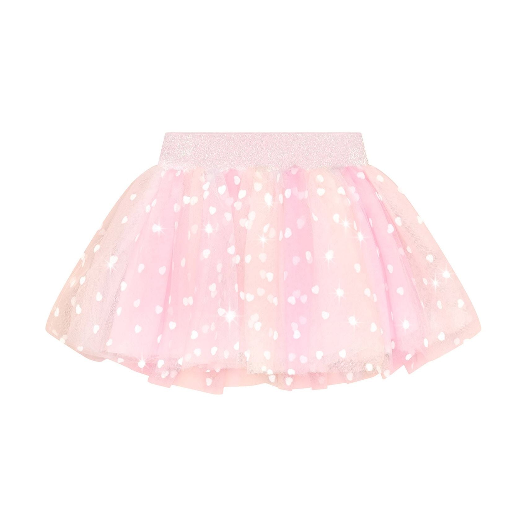 Pastel rainbow tulle skirt with all over flock heart print