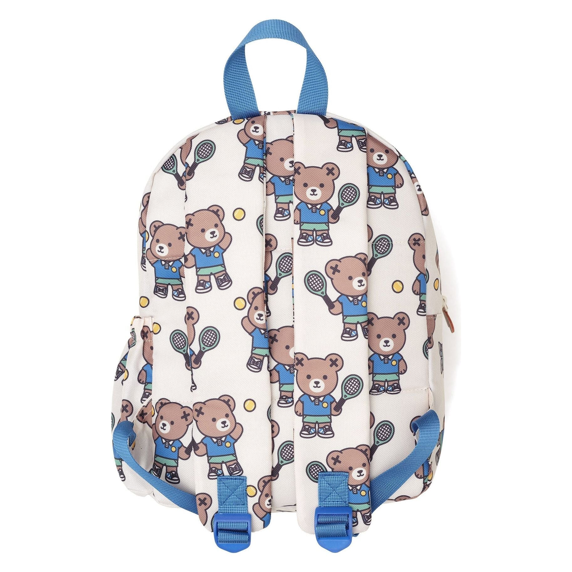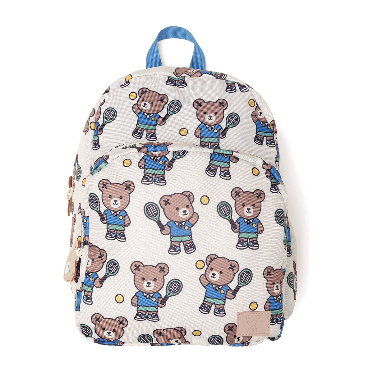 Features front zip pocket with Huxbear hanging keychain, elasticated drink bottle holder, internal zip pocket in main compartment and top handle