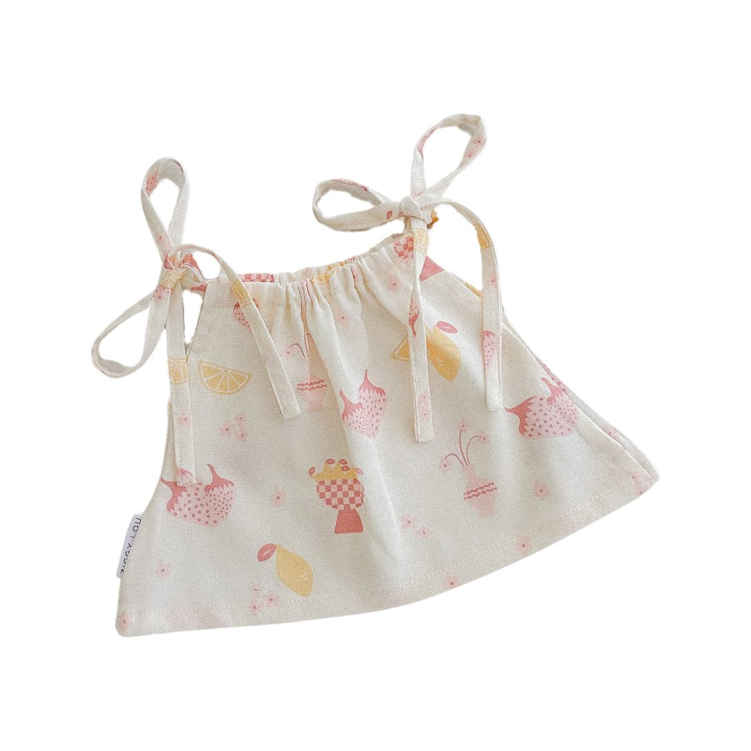 Linen blend singlet featuring our August printed design. Functional ties at the shoulder for the perfect fit. Mix and match with items from our August, Clementine + Paloma Summer Collections.