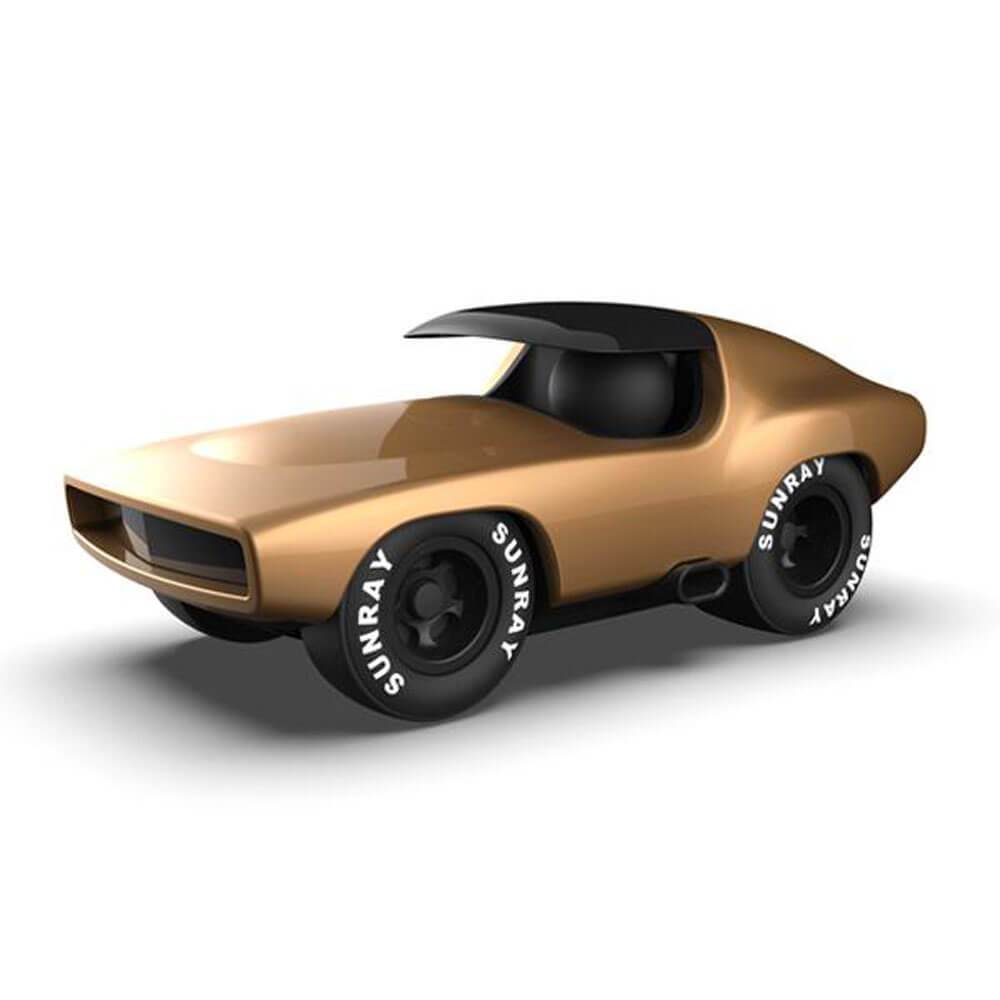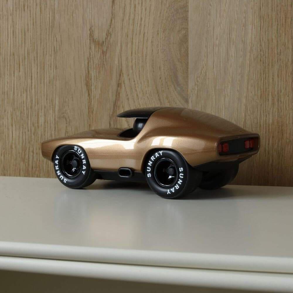Designed in the UK, Burnside is shimmering gold all over with a black roof and bumper. Solidly built for everyday play, the Playforever cars are perfect for the playroom or leave him on the shelf as stylish room decor.