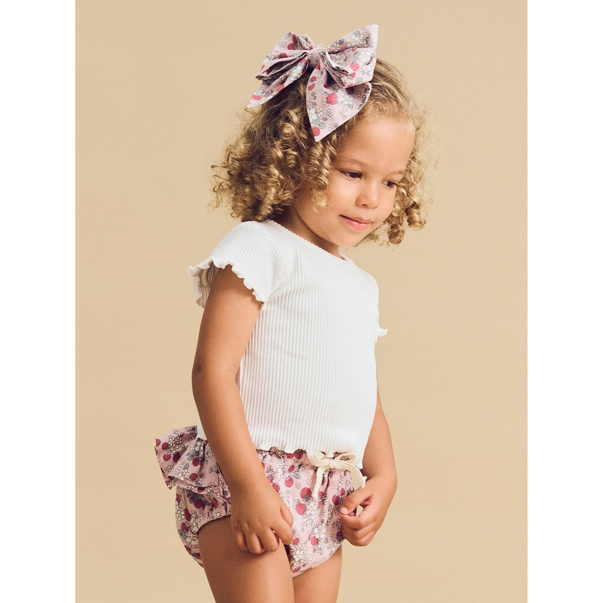 Super cute oversized cotton hair bow with clip with all over vintage strawberry print
