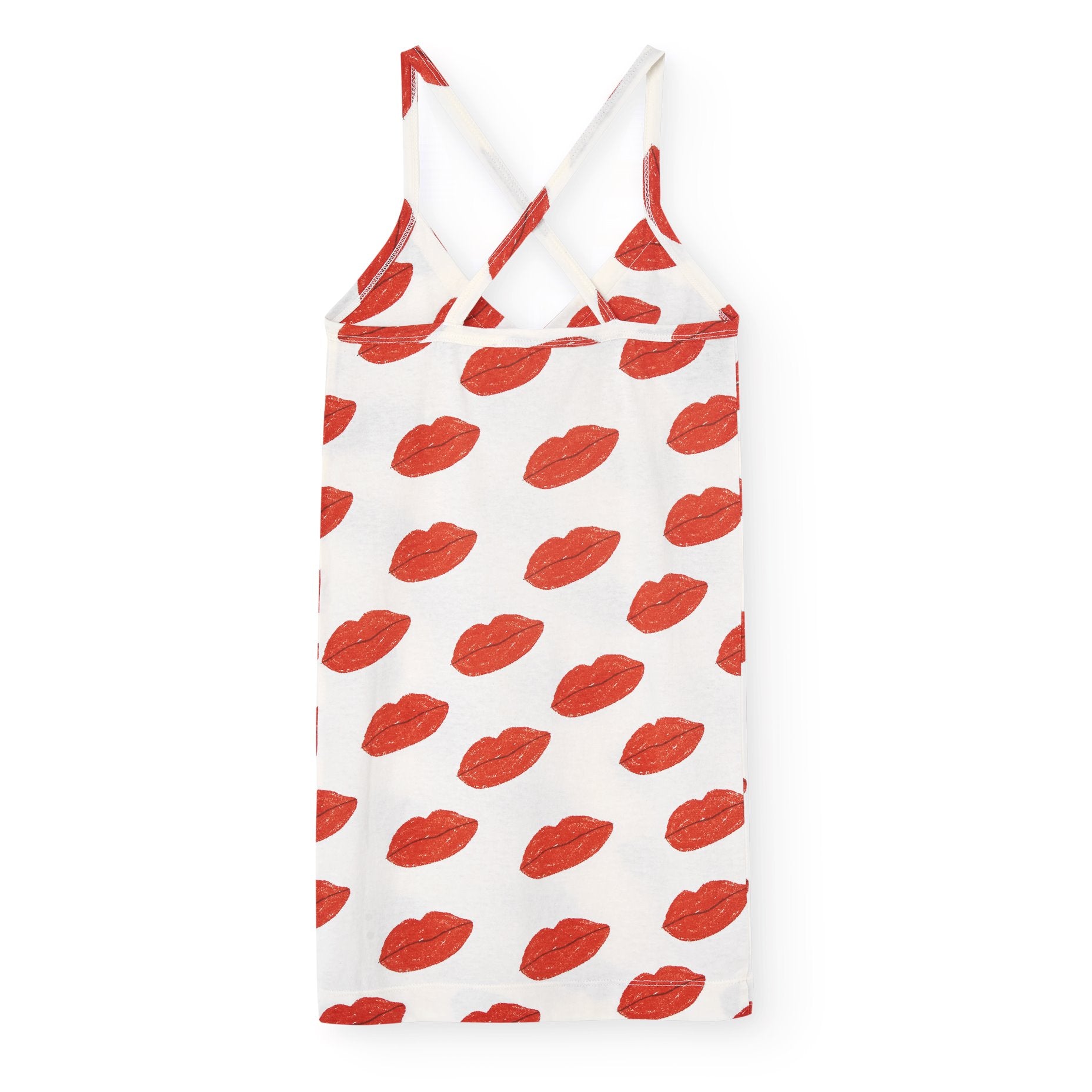 Summer dress with an orange kissing print. Bright and playful, ideal for summer fun.