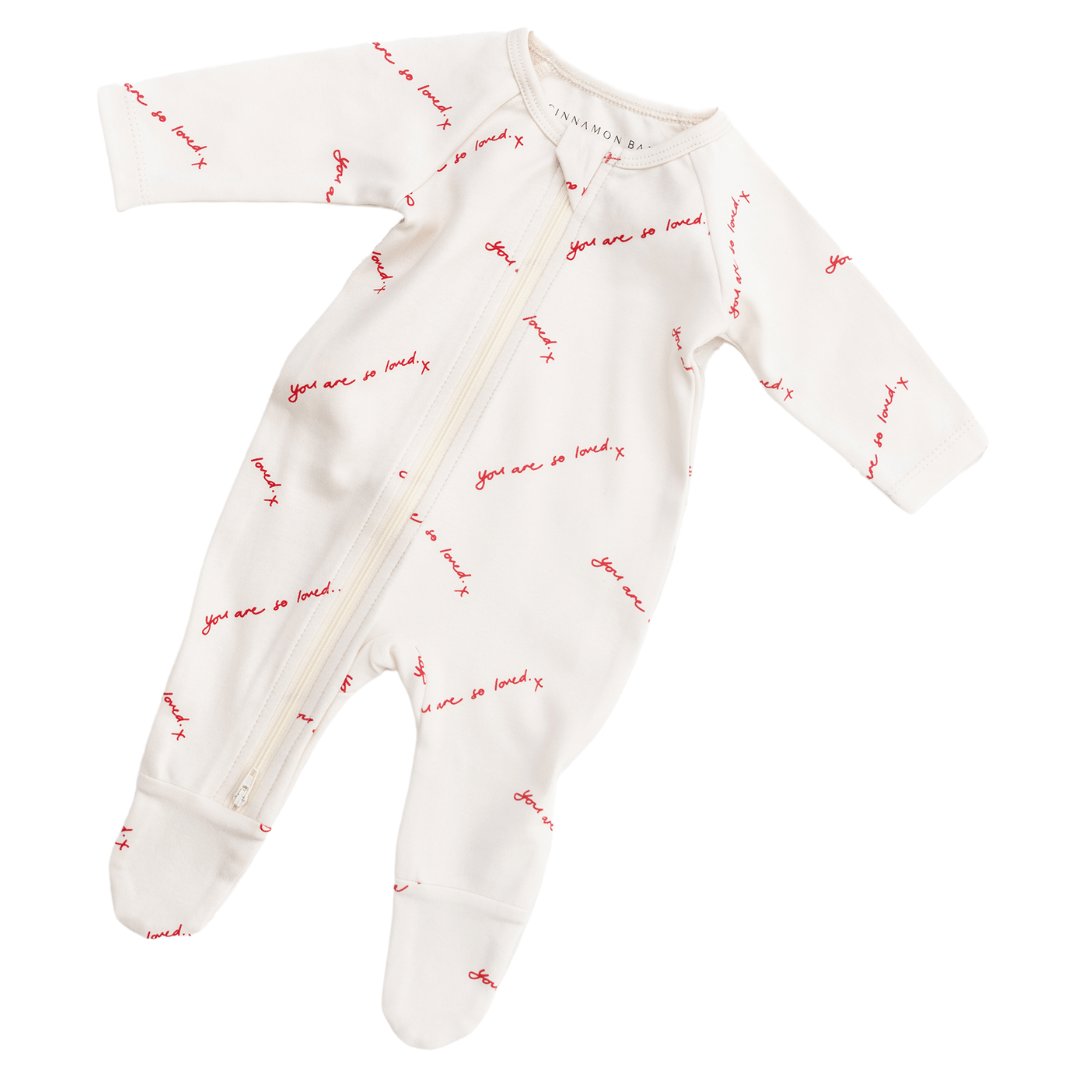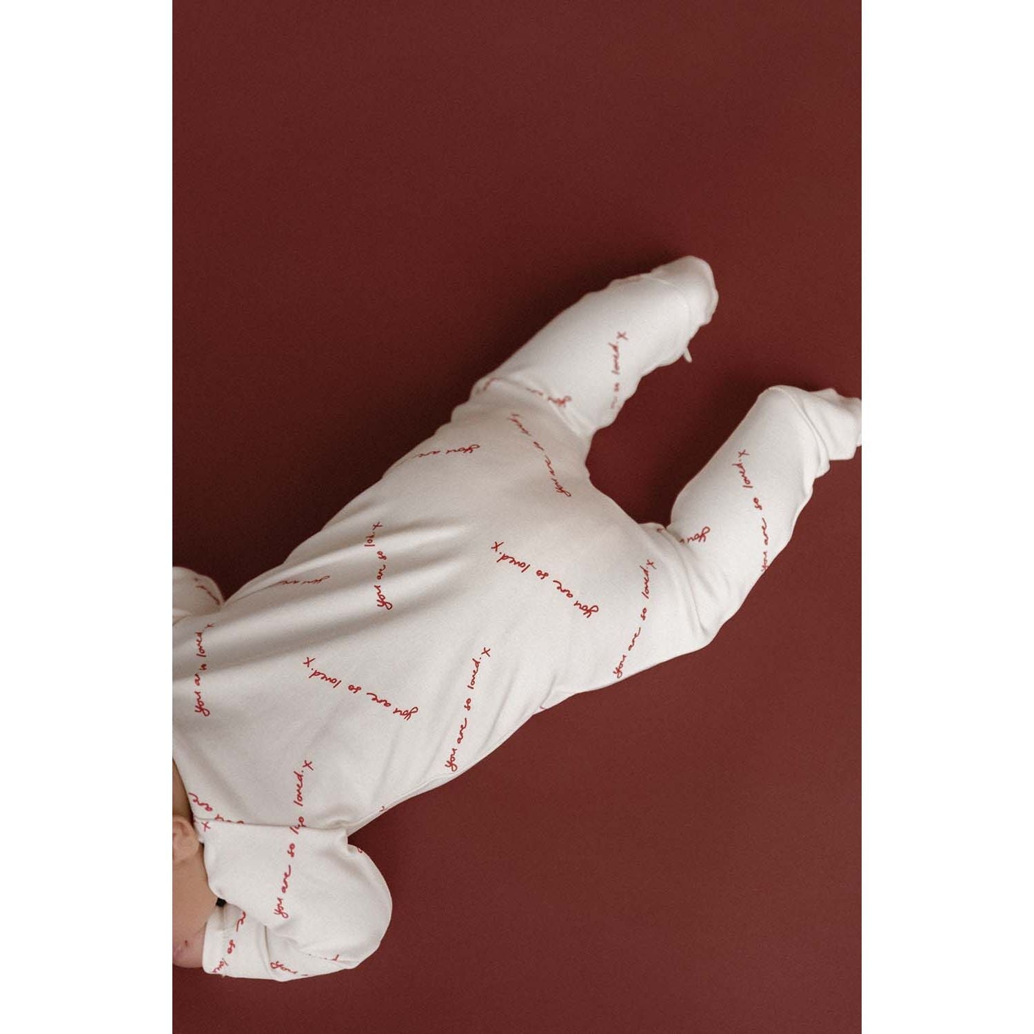 Wrap your little one in warmth and love with our "You Are So Loved" growsuit. Featuring an all-over print of this sweet, affirming message, this zip-up design makes dressing quick and easy. Made from soft, breathable fabric, it keeps your baby cozy and comfortable from head to toe. Available in sizes from newborn to 1 year old, this growsuit is perfect for play, naps, or cuddles—because every little one deserves to feel loved.